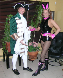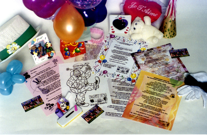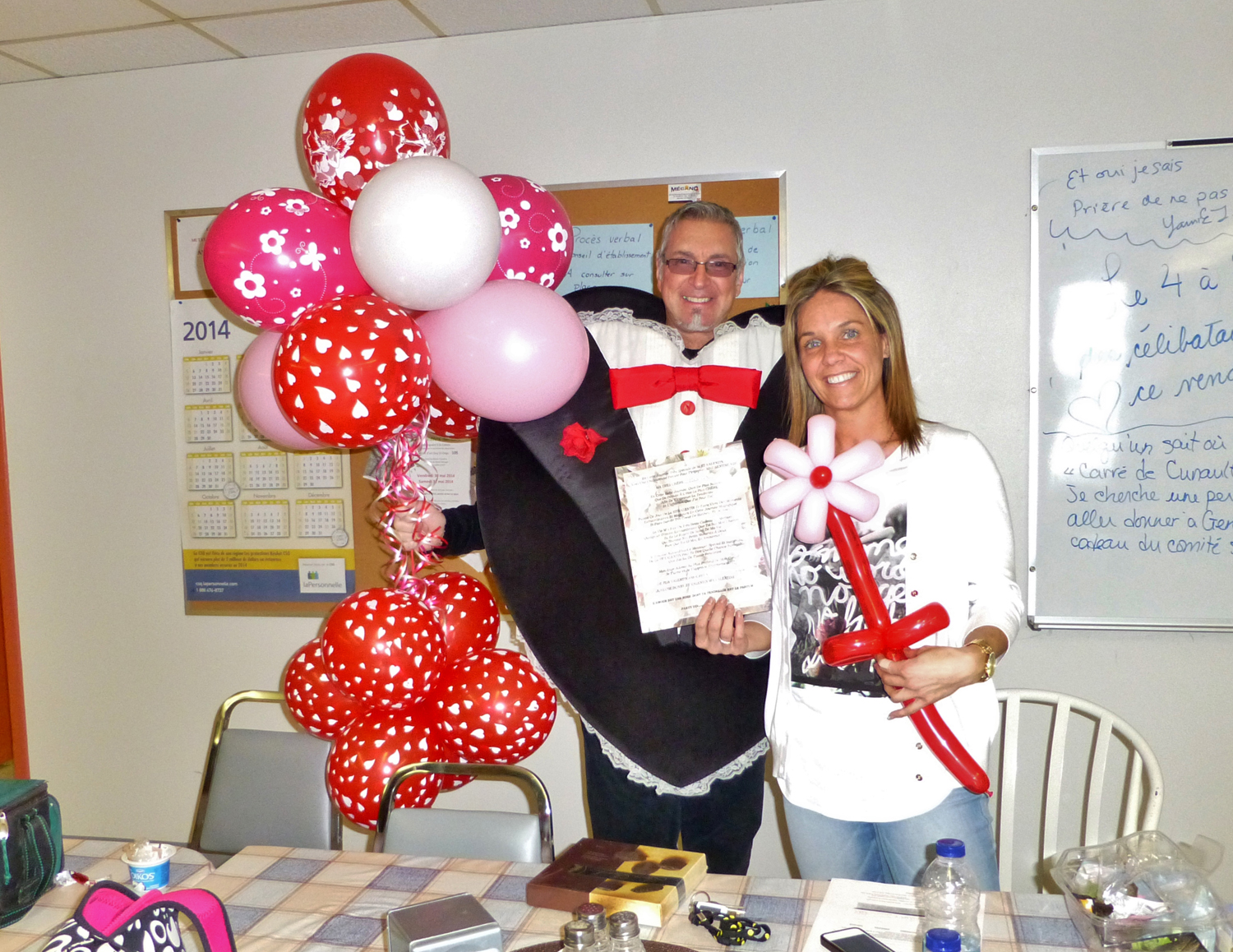 Personnages offerts: Toxedo, Mme Love, Crieur D'Epoque, Zorro, Marilyn Monroe, Elvis, Bunny, Chippendale, Policier, Pompier, Cowboy, Militaire, Docteur, Père-Noël, Clown, Mascottes, Poule, Gorille, Magicien, DJ, Artiste de Cirque...